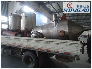 物料汽化氣體從加熱面送到外置的冷凝器,存在一定的壓差。在一般的蒸發(fā)器中,這種壓力降(Δp)通常是比較高的,有時(shí)甚至高得難于接受。而刮板式薄膜蒸發(fā)器有較大的氣體穿越空間,蒸發(fā)器內(nèi)壓力能看成與冷凝器中的壓力幾乎相等,因此,壓力降很小,真空度可達(dá)5mmHg。